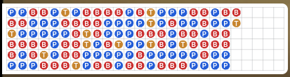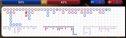 O jogo Bac Bo Brasileiro traz em sua interface um mapeamento do histórico de resultados dos vencedores nos dados com probabilidades. Esfera B (vermelha) para o banqueiro como vencedor, P (azul) como jogador como vencedor ou o T (amarelo) como empate.
