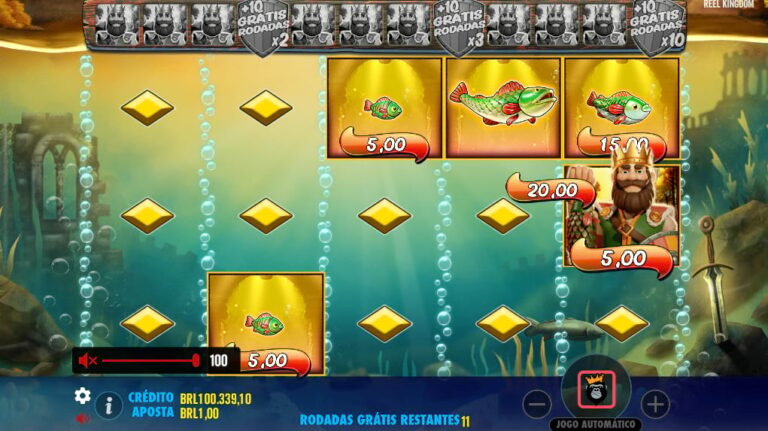 - Símbolo de Dinheiro: Representados por peixes de diferentes tamanhos, esses símbolos podem aparecer tanto no jogo base quanto nas rodadas grátis, assumindo valores monetários aleatórios que variam de 2x a 5.000x a aposta.
