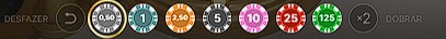 Antes de apostar, lembre-se de definir o valor que deseja colocar na rodada por meio das fichas disponíveis na parte debaixo do jogo.