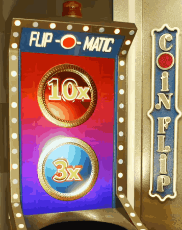 - Coin Flip: A roda para no Coin Flip e uma moeda com dois multiplicadores aleatórios é lançada; o lado virado para cima define o prêmio adicionado aos seus ganhos.