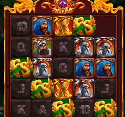 Quando uma vitória com símbolo especial ocorre com Medusa em jogo, os símbolos viram pedra.