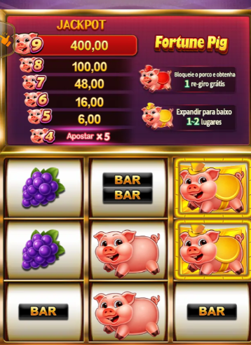 - 5 ou mais Porcos: pagam conforme a tabela exibida no jogo principal.