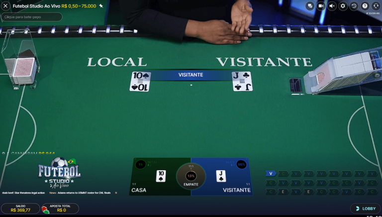 Jogar Futebol Studio Ao Vivo é simples, você adivinhar qual de duas cartas será a maior, Casa ou Visitante, ou se resultará em um empate. O jogo é uma versão simplificada do Baccarat, onde você aposta no resultado de duas cartas distribuídas, visando prever qual terá o valor mais alto ou se será um empate.