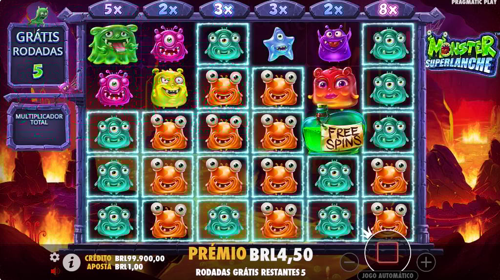 O valor que os símbolos pagam em Monster Superlanche depende de quais símbolos você combina e quantos por agrupamento.