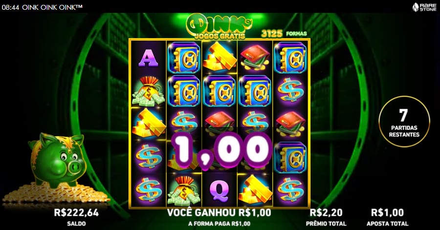 Oink Oink Oink é um jogo de slot onde você precisa escolher o valor da sua aposta no painel de controle do jogo. Em seguida, basta pressionar o botão de giro para começar a jogar e torcer para as moedas coloridas aparecem nas bobinas para ativarem os jogos bônus.