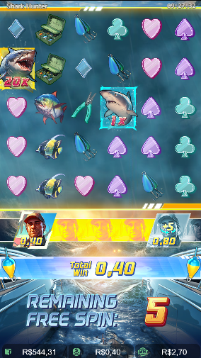 O valor mínimo de aposta no jogo Shark Hunter é de R$0,40.
