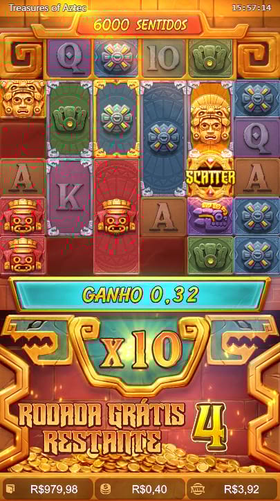 No jogo Treasures of Aztec , você ativa as rodadas grátis ao obter 4 símbolos Scatter, ganhando 10 rodadas grátis. Cada Scatter adicional concede 2 rodadas extras.