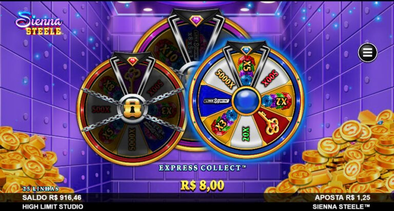 Para ativar as rodadas grátis no Sienna Steele, obtenha 3 símbolos de scatter para 10 rodadas grátis. Durante essas rodadas, multiplicadores de prêmios Express Collect™ se aplicam, aumentando os ganhos.