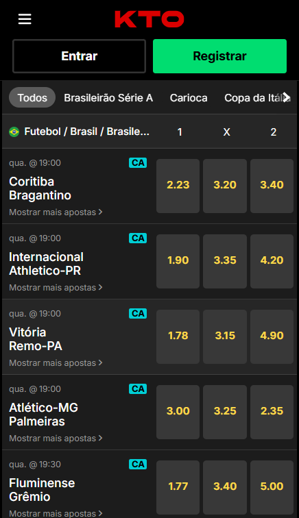 Verifique sempre no site da KTO quais mercados são compatíveis ao usar a ferramenta “Criar Aposta”.