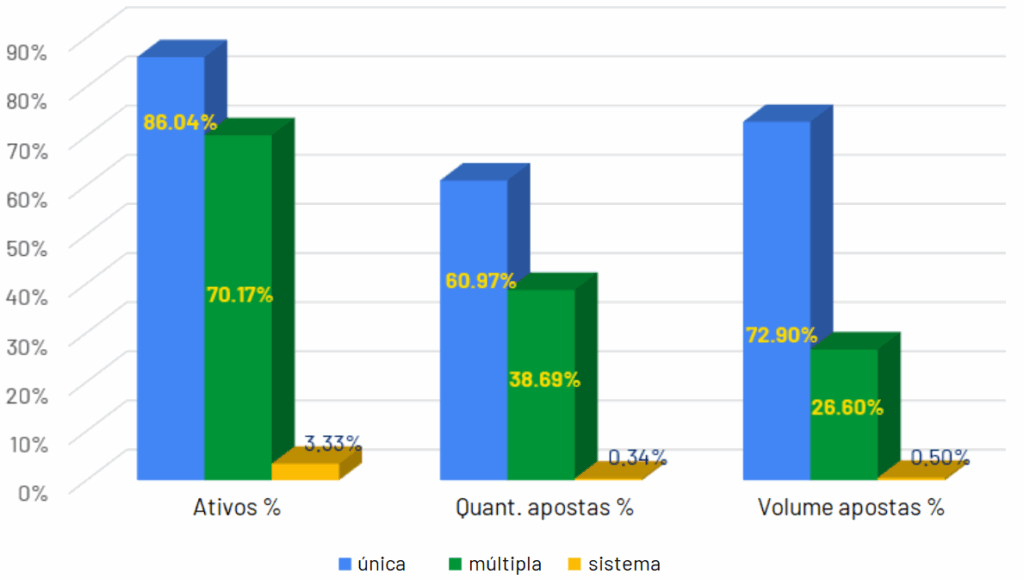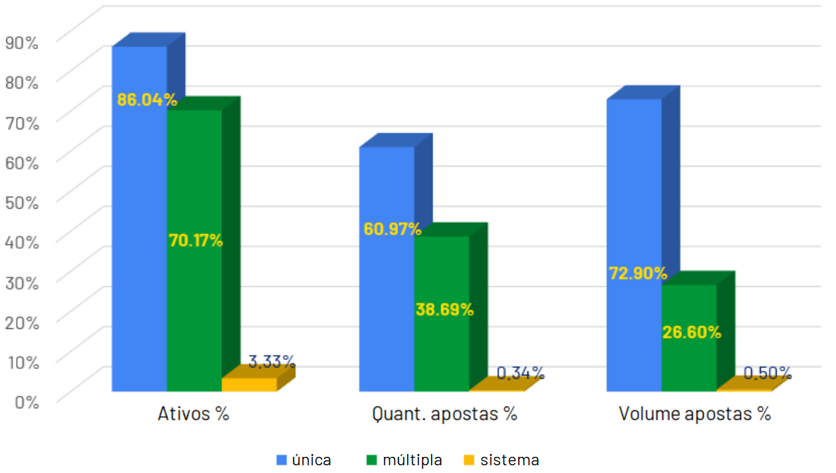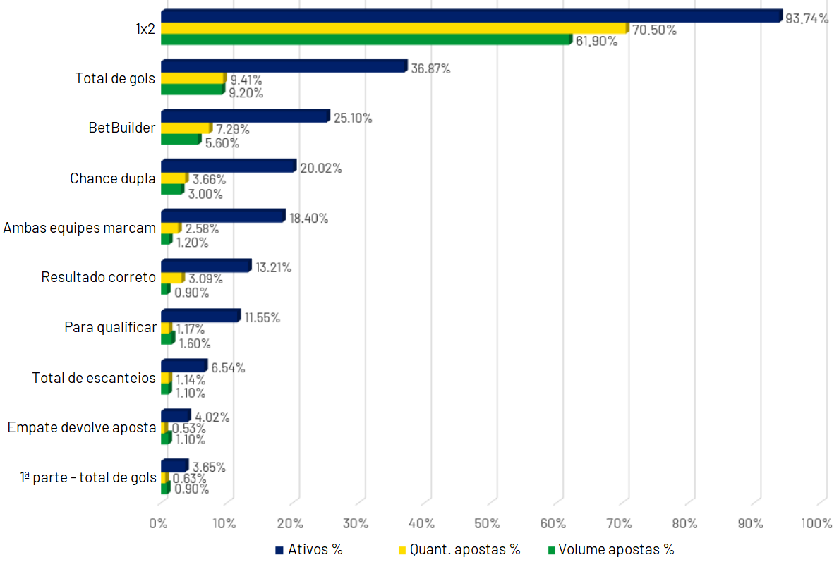 Por outro lado, 86,5% das apostas ficaram nos mercados mais conhecidos, com o resto se aventurando por territórios mais específicos.