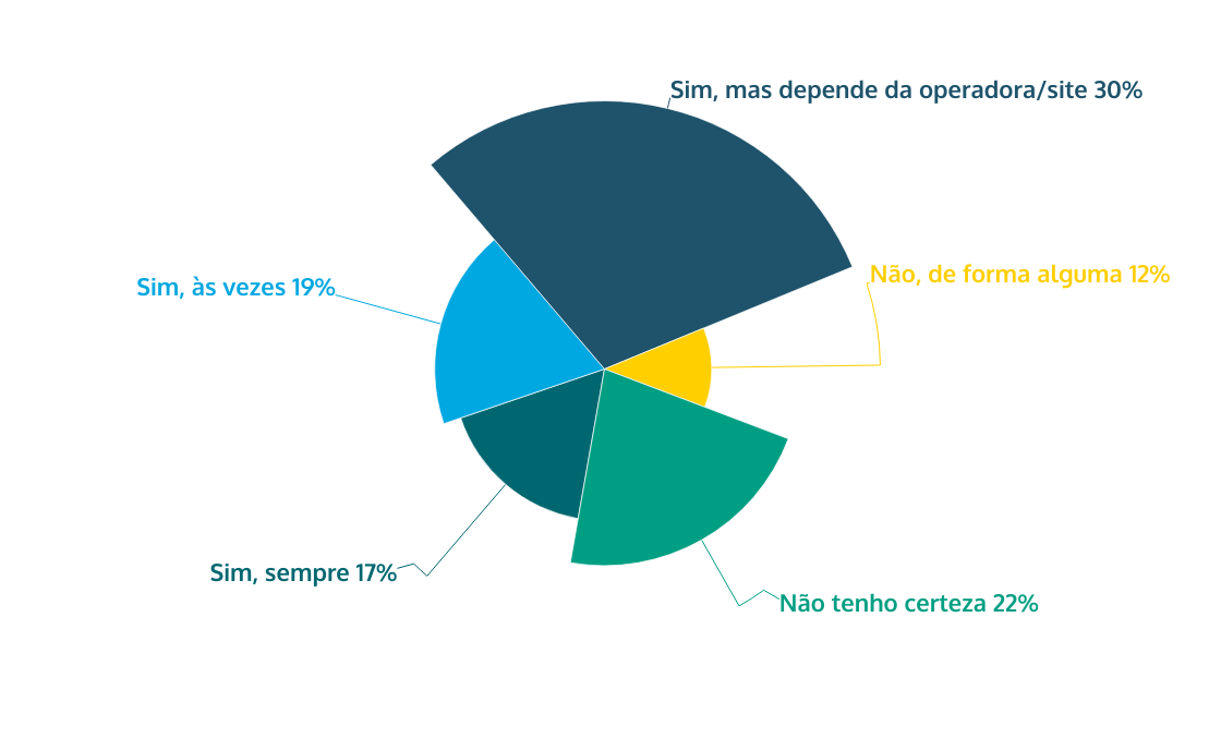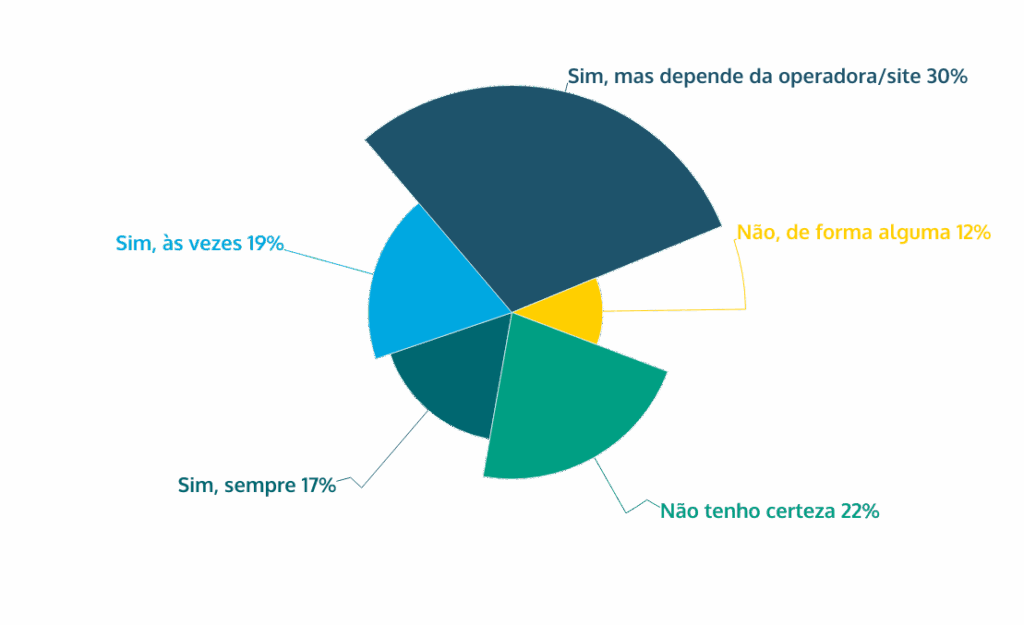 Podemos ver que apenas 17% dos jogadores estão confiantes de que os ganhos são sempre pagos corretamente, enquanto 30% acham que isso depende da operadora.