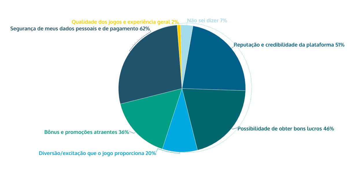 62% dos nossos jogadores valorizam a segurança de seus dados pessoais e de pagamento, enquanto 51% buscam reputação e credibilidade.