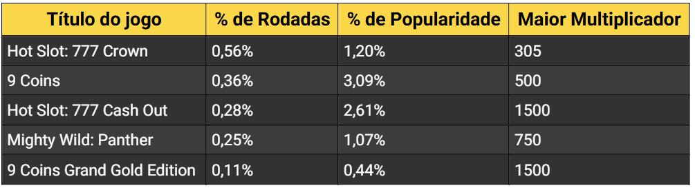 Os destaques deste mês incluem o domínio consistente dos caça-níqueis, o maior potencial de ganho dos crash games e o apelo de dealers nativos em mesas de cassino ao vivo.