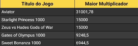 Outro destaque foi Starlight Princess 1000, que alcançou 15.000x, repetindo o feito de jogos que lideraram em meses anteriores. Zeus vs Hades Gods of War manteve-se firme com o mesmo multiplicador de 15.000x em fevereiro, uma melhora significativa em relação a janeiro, quando registrou 8.400x.