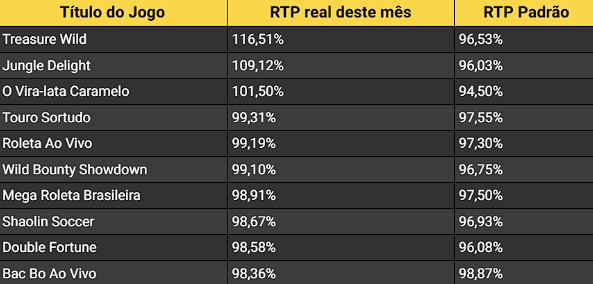 Aqui está uma lista de jogos com a maior RTP real deste mês que você não vai querer perder, em comparação com as RTPs padrão destes mesmos jogos: