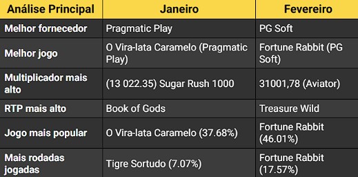 Tigre Sortudo, da Pragmatic Play, manteve-se no Top 3, mas Ratinho Sortudo caiu para a sétima posição. Gates of Olympus sofreu a maior queda, passando de 35,67% de popularidade em janeiro para 12,93% em fevereiro.