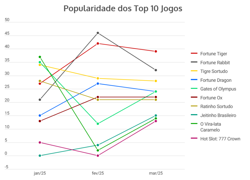 Os slots continuam dominando o Top 10 de jogos mais populares, mas março trouxe mudanças importantes nas primeiras posições.