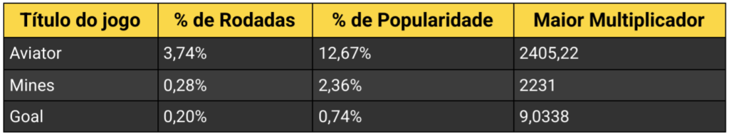 Spaceman também apresentou crescimento, subindo de 1,27% para 1,84%, enquanto FlyX teve uma leve queda, passando de 1,35% para 1,20%.
