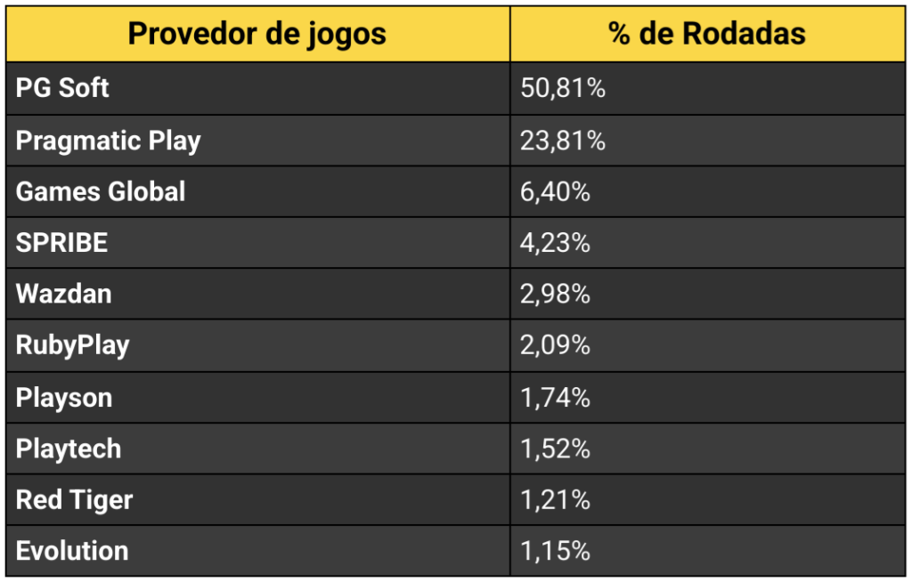 Já a SPRIBE manteve-se estável, com 4,23%, consolidando-se entre os cinco mais jogados.