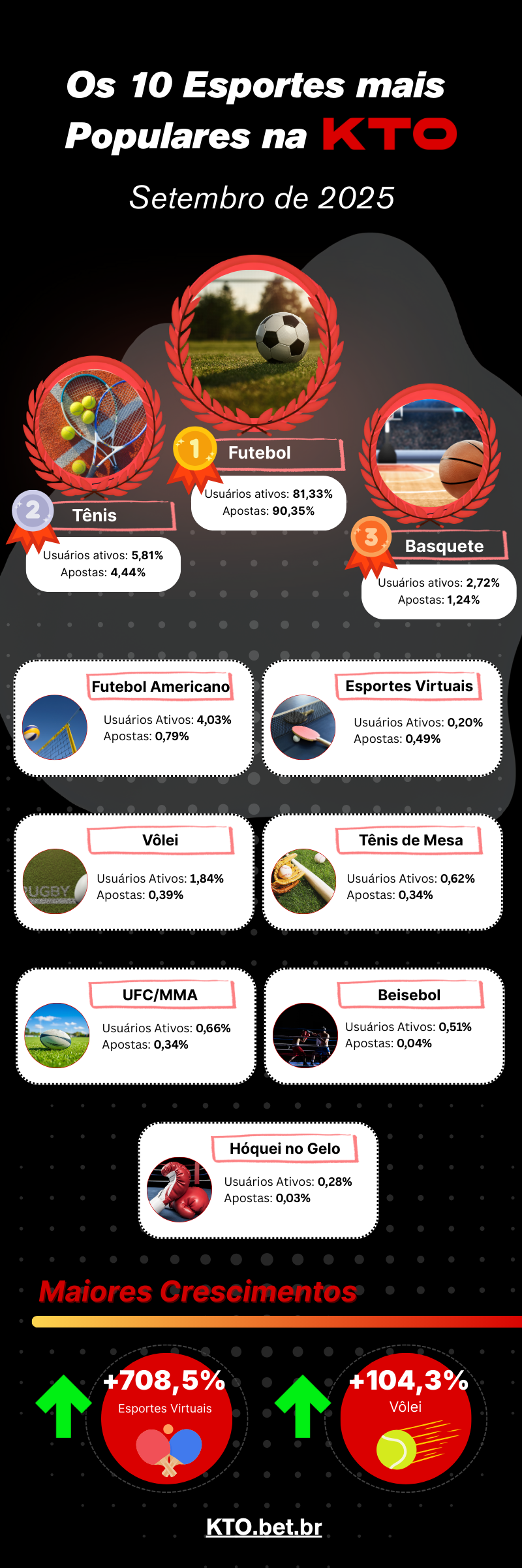 Quais Foram os Esportes Mais Populares na KTO em Setembro?
