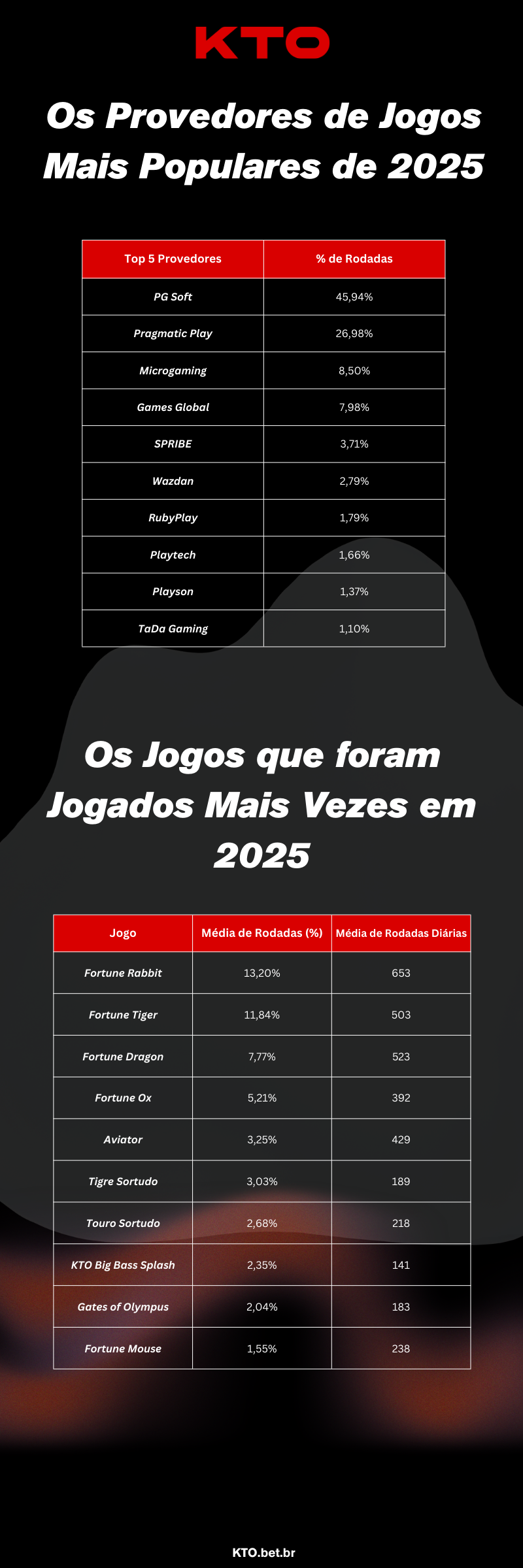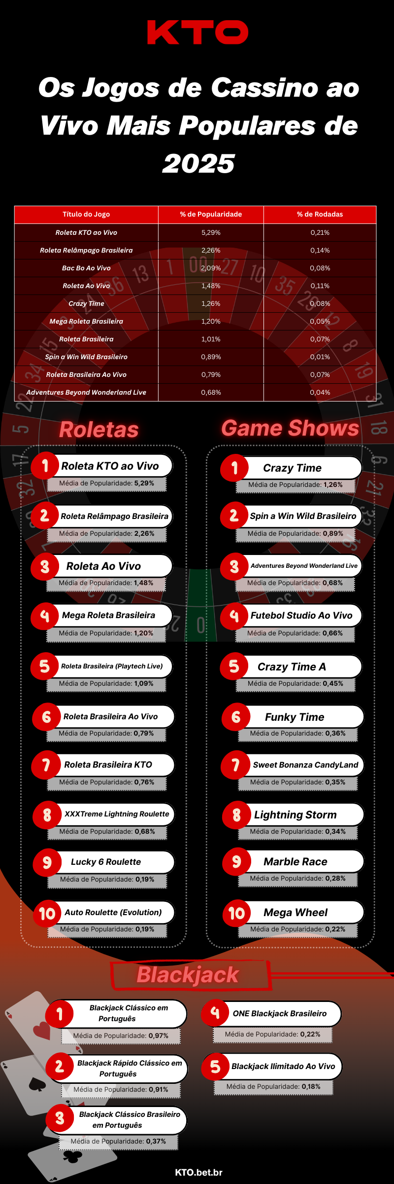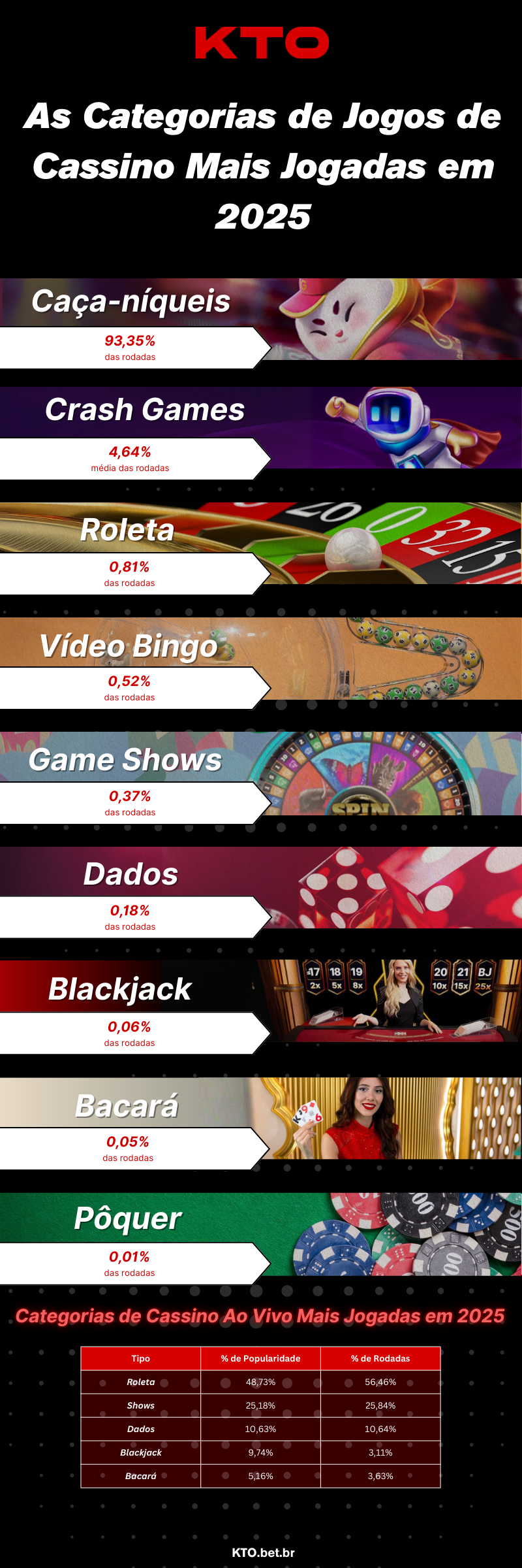 Veja a pesquisa anual com os jogos de cassino mais populares da KTO em 2025, destacando slots, crash games, cassino ao vivo, maiores RTPs, multiplicadores máximos e os jogos que mais cresceram no ano.