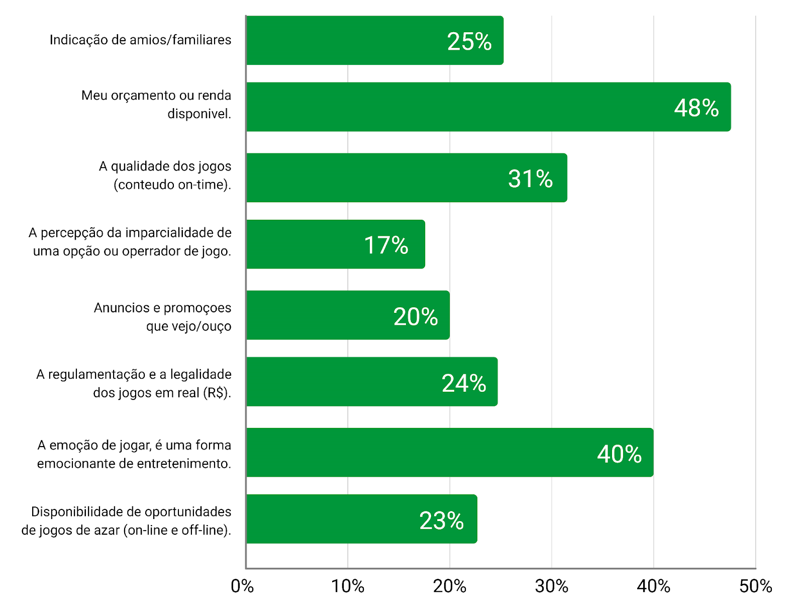 - 25% seguem recomendações de amigos ou pares, com círculos sociais revelando uma influência amplamente esperada no comportamento de jogo.