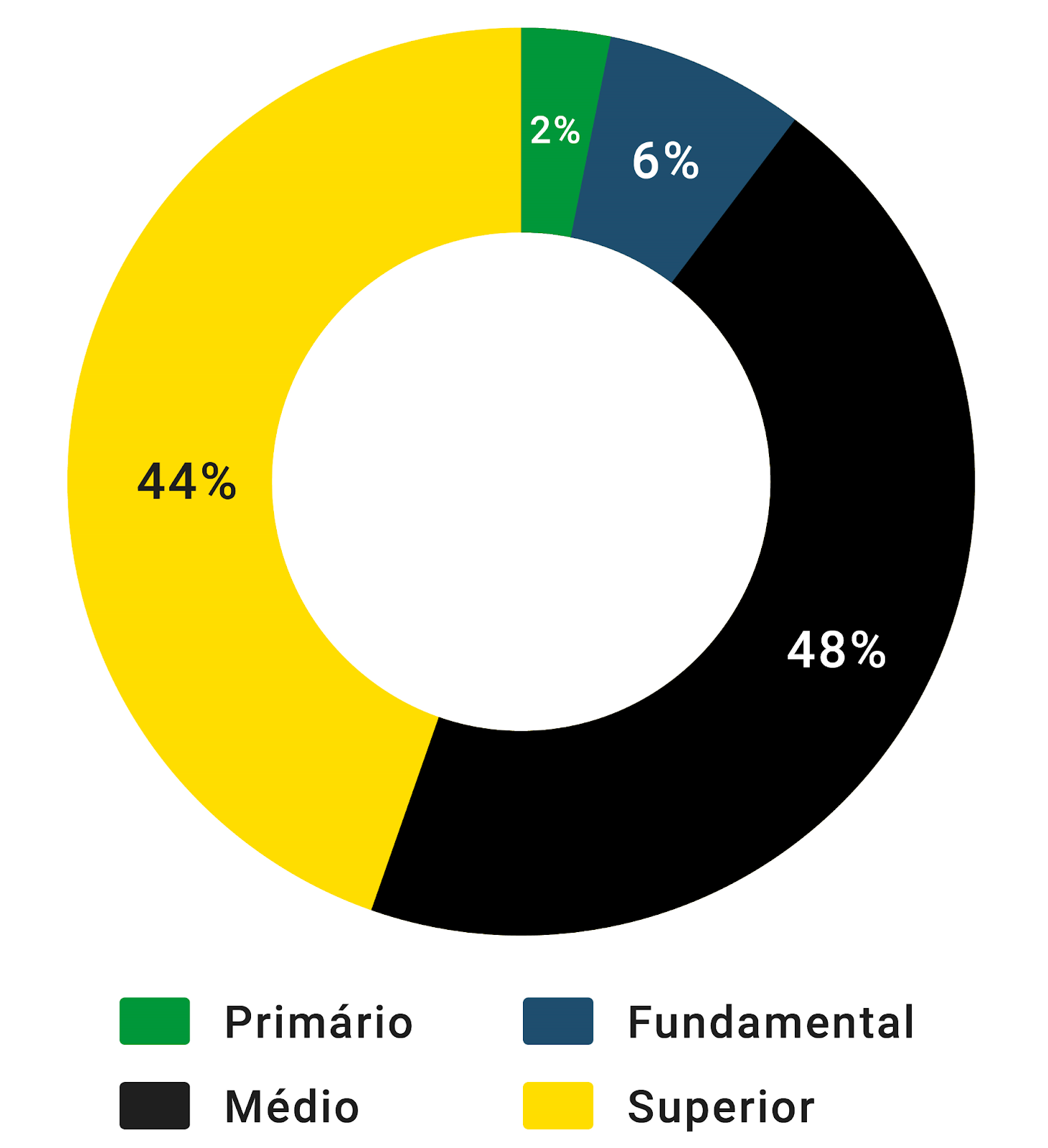 - Educação – Aqui, 48% completaram pelo menos o ensino médio, e impressionantes 44% têm formação universitária.