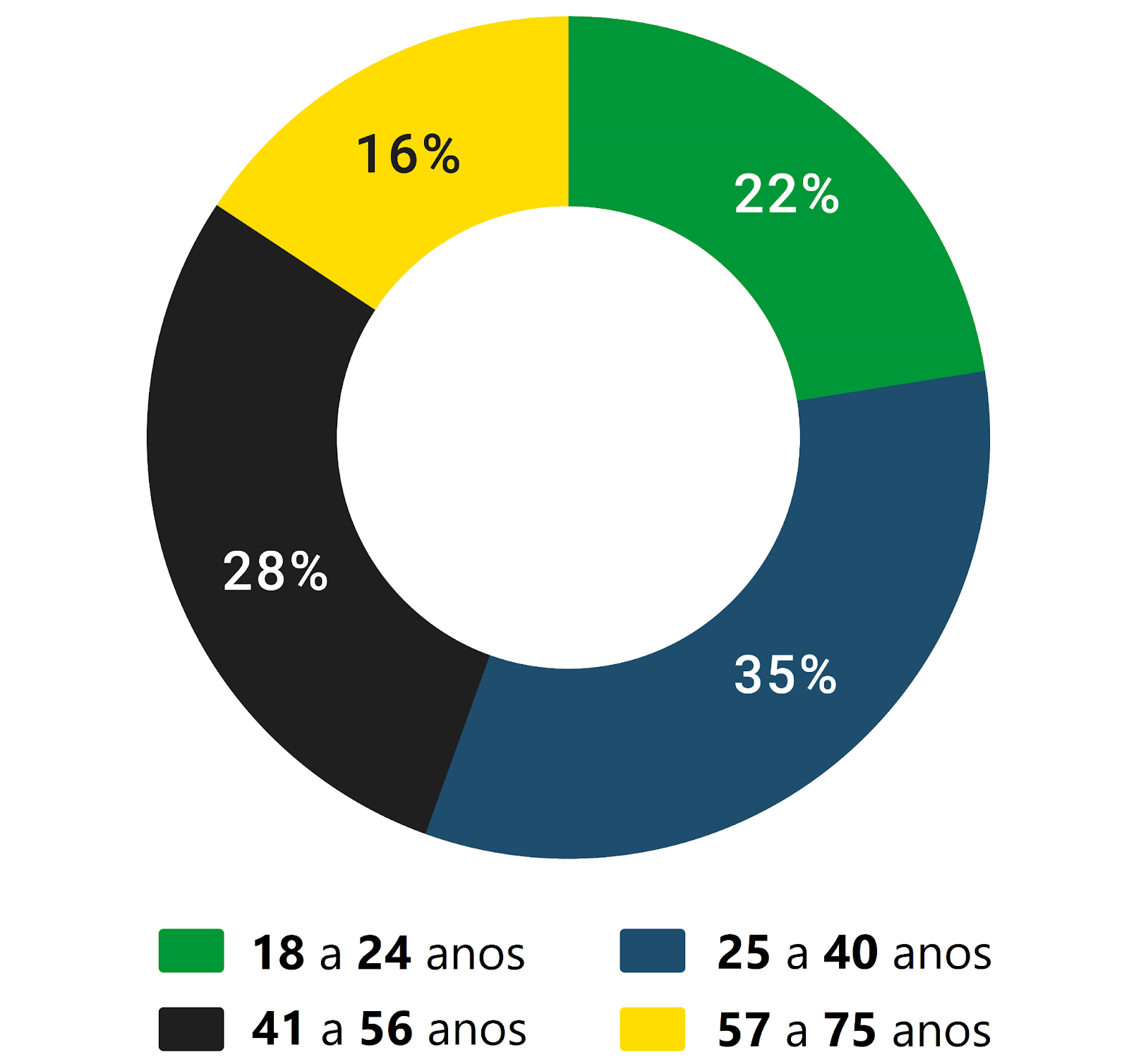 - Faixa etária – A idade média gira em torno de 39 anos, mas não se engane, o espectro é amplo e diversificado.